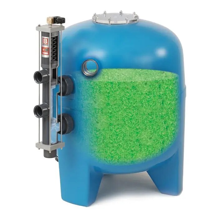 - Filterdurchmesser 70cm, Filterhöhe 90cm: 5 Sack AFM 2 und 5 Sack AFM 1