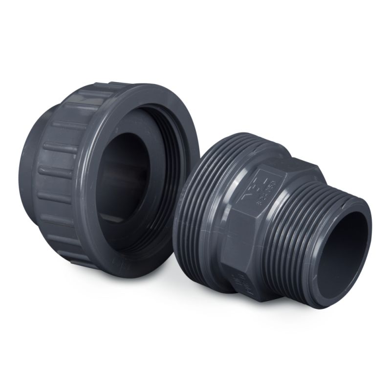 PVC Kupplung grau, Klebemuffe x Aussengewinde