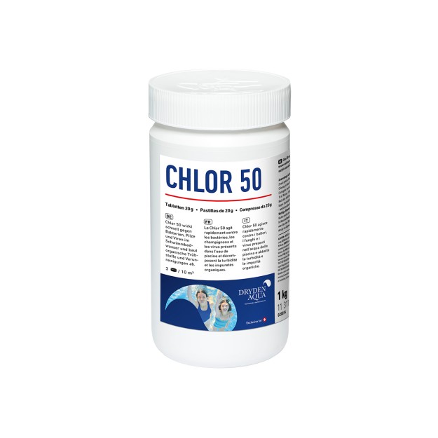 Chlor 50 schnelllösliche Tabletten 20gr, 1kg Dose